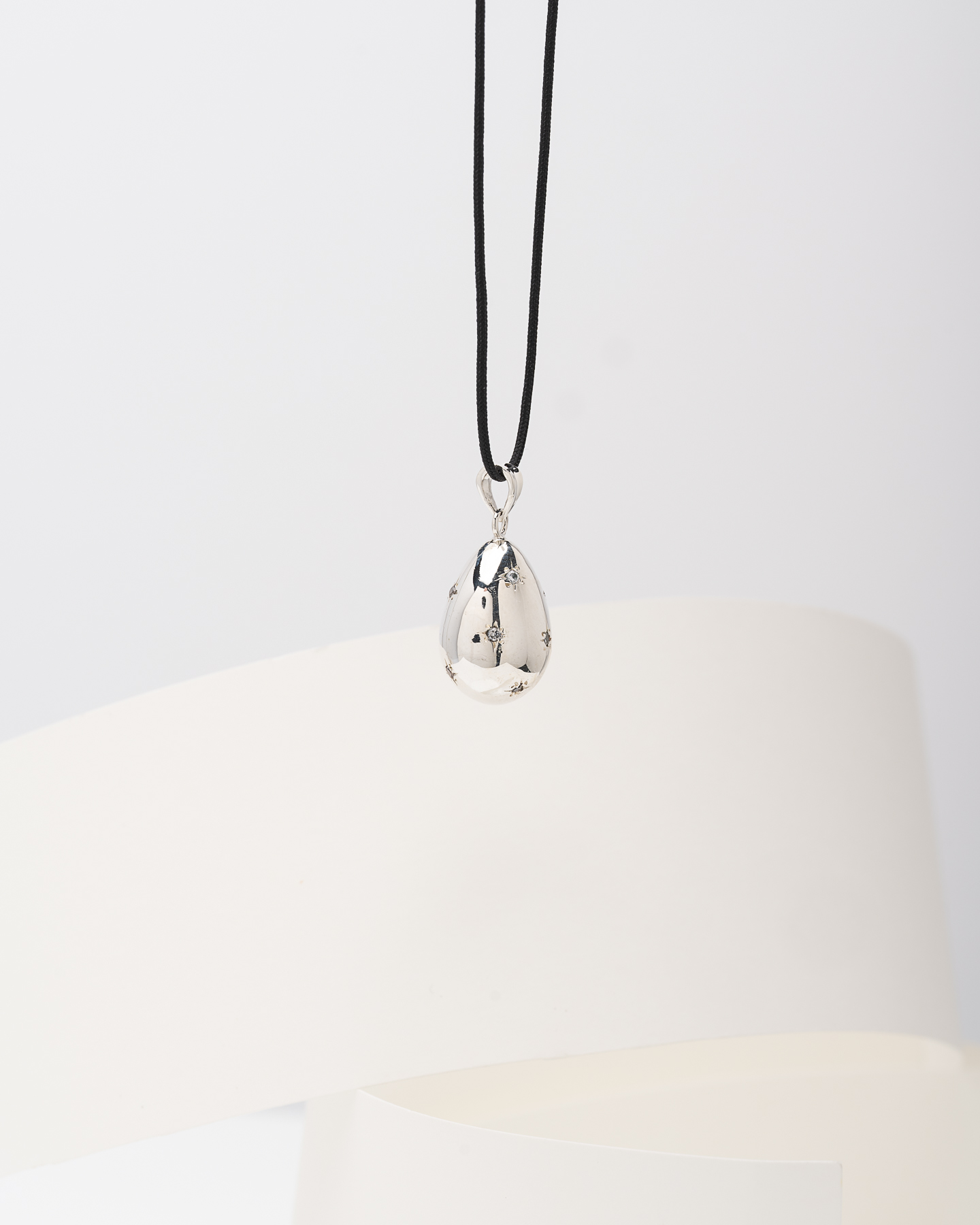 Προσθέστε μια δόση πολυτέλειας και λάμψης σε κάθε σας εμφάνιση με αυτό το εκλεπτυσμένο κολιέ από ασήμι 925. Το διαχρονικό σχήμα “αυγού” αναβαθμίζεται με 12 χειροποίητα τοποθετημένες πέτρες ζιργκόν, δημιουργώντας ένα κόσμημα που μαγνητίζει το φως και τα βλέμματα.